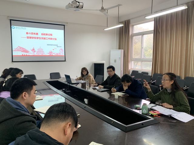 本网讯(通讯员 李婷)3月18日10时,管理学院党委组织召开“奋斗百年路·启航新征程”学生党建工作专题研讨会,围绕“在建党100周年之际,学院如何高质量的开展学生党建活动,如何保质保量精准完成好党员发展任务,如何增强育人成效,发挥好学生党员、入党积极分子的带头示范作用,实现‘党建带学建、带团建’的目的”等主题展开了针对性研讨交流。分党委书记戴正华、组织员李晓华和行政党支部、学生第一、第二党支部全体辅导员参会。管理学院分党委副书记刘兴主持会议。
