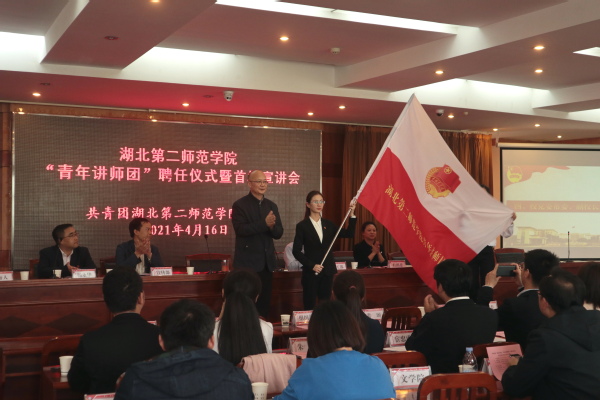 黄颂为青年讲师团授旗并讲话。他对青年讲师团的成立表示祝贺,结合今年共青团的工作提出三点希望:一是要认清责任,高度重视宣讲工作。二是要发挥作用,切实回应青年关切。三是要提高水平,增强宣讲工作的实效性。他强调,今年是中国共产党成立一百周年,我校青年要更加深入系统地学习“四史”,以昂扬的斗志和扎实的学识,在实现中华民族伟大复兴中国梦的新长征路上奋勇前进。