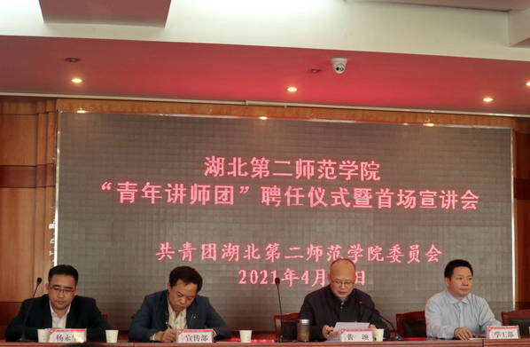 本网讯(通讯员 吴文娟 青媒见习记者 刘天 李明月)4月16日下午,学校行政楼五号会议室举行“青年讲师团”聘任仪式暨首场宣讲会。副校长黄颂出席并讲话。仪式由校团委副书记陈扬主持。