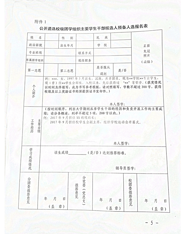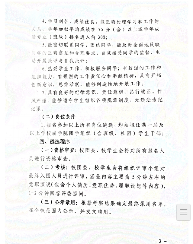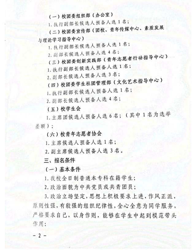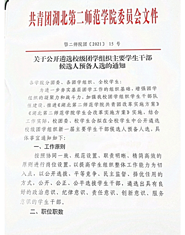 关于公开遴选校级团学组织主要学生干部候选人预备人选的通知