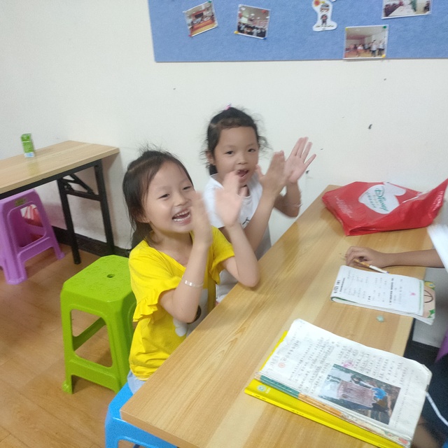 在对党徽进行了解之前,满天星志愿者向学生们提了几个问题,他们都能快速并正确地说出答案,但在问到党徽上的镰刀和锤子表示什么时,他们并不能回答出来,但在后面得知可以对党徽进行更深一步了解后,可以知道答案时,她们脸上流露出洋溢的笑容,并快乐地鼓掌喝彩!