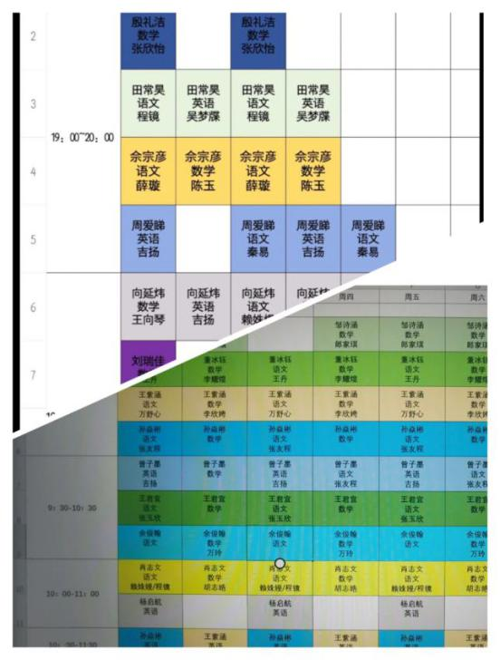 “云上慧支教”团队制定的课表(不完全)。通讯员 吉扬 供图
