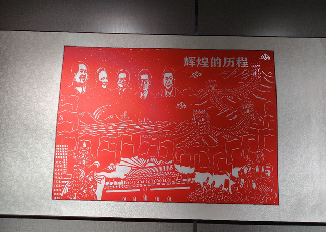 看完了《厉害了,我的国》,剪纸作品《辉煌的历程》也让我叹为观止。这幅作品分别刻画了我国建党以来优秀的领导人:毛泽东、邓小平、江泽民、胡锦涛、习近平,细致勾勒出中国共产党建党以来从苦难到辉煌的艰难历程;我们可以看到,剪纸的下半部分是万里长城、人民群众、繁花似锦,这展示了我国一路走来不断成长、壮大,党与人民群众风雨同舟、同甘共苦,与全国各族人民紧密团结,备受人民群众拥护,一派生机勃勃的景象。看着这幅作品,我心底的自豪感油然而生,生于华夏,我是如此的幸运。