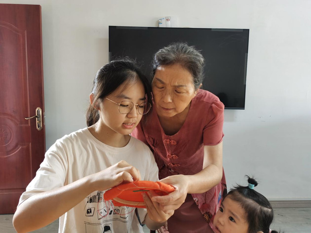 刘寿仙的屋檐上,挂着“红安绣活太平桥传下”的牌匾,很多当地人都来跟着她学习。让“红安绣活”源远流长,是刘寿仙一生的追求,她将自己家改装成红安绣活传习所,希望通过自己的努力,培养出更多的“传承人”。天气好的时候,当地的妇女就围绕在她家的小院里,跟着她一起进行红安绣活的学习。