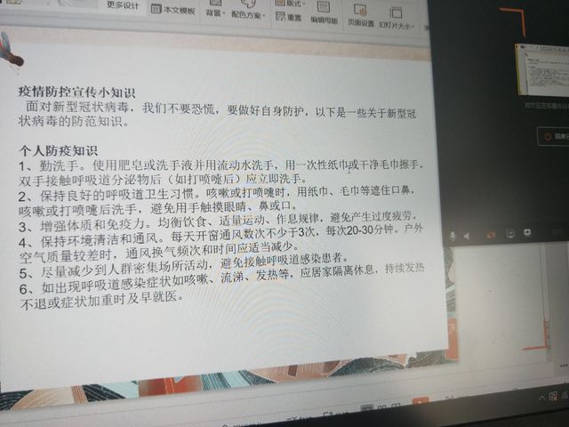 图为通过网络连线向居民分享介绍疫情防控的知识。