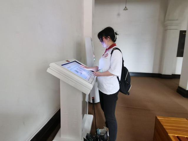 主楼大厅里设有智能答题机,志愿者在答题中了解革命先烈们的英勇事迹,在浏览解析中牢记革命先烈的英勇事迹。牢记历史方能开创未来,如今祖国繁荣昌盛,人民安康幸福,但仍应牢记革命者不惧危险开天辟地的革命精神,牢记青年一代的使命,让使命在于心,在于行,脚踏实地,力所能及做实事,为祖国的发展奉献一份力量。志愿者能从智能答题机中了解到那段不为我们所知的历史,进而更深刻的体会到革命先烈的奉献精神与大无畏的革命精神。