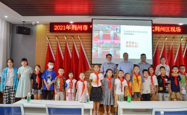 最后,共青团员和少先队员代表集体致献词。在鲜红的党旗前,共青团员、少先队员三声“请党放心,强国有我”掷地有声,铿锵有力。党史学习于无形中传播红色思想,在少先队员们幼小的心底厚植红色基因。本次的党史学习教育让党史学习教育真正“实”起来、“活”起来、“动”起来,成为孩子们看得见、摸得着、感受得到的“身边历史”,让党史学习教育展现出更加可亲、可近、可爱的青春样貌。