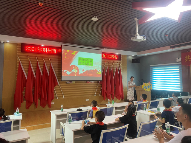 在活动过程中,谢正芬向小朋友们生动形象地展现了中国共产党的百年历史,讲述了从浙江嘉兴南湖船上党的诞生到众多革命英雄的不畏艰苦、为国献身的光辉事迹,深深地吸引着小朋友们的目光,激发了他们浓厚的兴趣,引导小朋友们理解建党百年,让他们对党的历史有了更深入的了解。谢正芬以英雄少年王二小为例,描述了当时共产党所处危险境遇时,王二小凭借聪明才智,成功化解危机的故事。接着,采取有奖问答的方式,鼓励小朋友们积极踊跃发言,说出自己心中的革命英雄,由此引领广大青少年认真学习感悟今天幸福生活的来之不易,弘扬传承红色文化,追忆革命岁月,为实现中华民族伟大复兴而奋斗。课程中凝聚着对党至高无上的敬意,课堂上展现着党的百年风华。