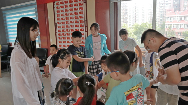 (图为志愿者带领小朋友们做破冰小游戏,活跃气氛。通讯员 马恒芳摄)