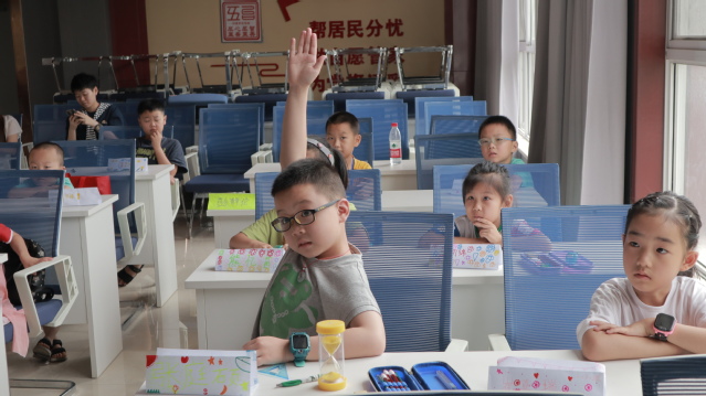 本网讯(通讯员 李玉玲)为丰富荆州青少年的暑假生活,助力关爱荆州留守儿童,7月19日上午,我校教育与科学学院四叶草青年志愿服务队第二小队在荆州市荆州区郢城镇五台村居民委员会开始了暑期支教的第一节课。在第一节课中,为了加强志愿者老师和小朋友们之间互相认识和了解,方便后续班级建设和管理,志愿者们组织带领小朋友们制作姓名牌并进行自我介绍、竞选班干部并制定班规、一起做破冰小游戏。
