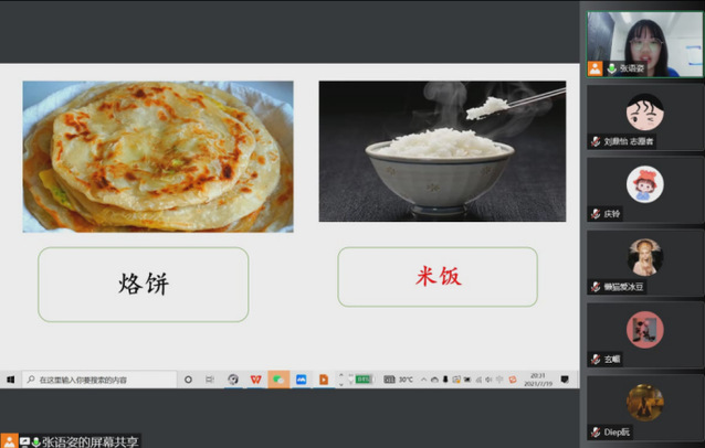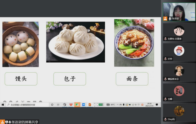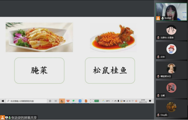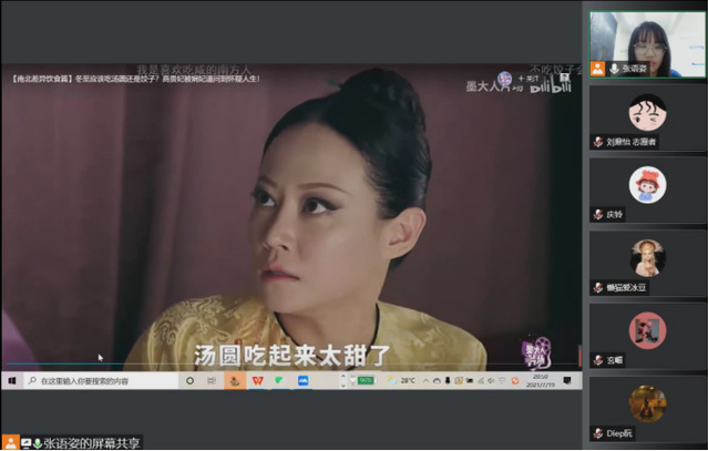 本网讯(通讯员 刘鼎怡)7月19日晚上20:00,向日葵对外汉语线上交流服务队初级组第八次教学由志愿者志愿者张雨姿介绍中国南北方饮食差异。通过这一节课,越南学生们不仅对中国美食有了更进一步的了解,而且还能区分南北饮食文化差异,拉近了中越美食的距离。