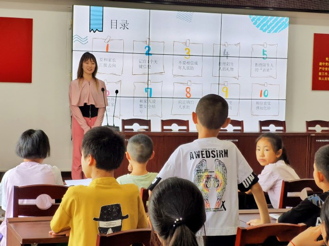 本网讯(通讯员 张彦霏 陈方圆)随着生活水平的不断提高,生活中用电用气的地方越来越多,生活中的安全隐患问题日益见长,为了保障孩子们的暑期安全,并为孩子们健康成长保驾护航,7月21日上午,我校四叶草青年志愿服务队驻铜岭村第三小队在荆州市荆州区八岭山镇铜岭村党委员会二楼给孩子们带来了一节暑期安全教育课。“安全工作重于泰山。”面对许多小朋友安全意识还不够高、安全防护还不够到位的现状,第三小队成员郑芸利用此次暑期课程进行集体教学,通过课堂互动、游戏问答等教学环节,让同学们树立安全意识,掌握一些基本的用电常识以及一些安全防护技巧,尽量减少安全隐患,在安全问题突发时有措施可行,有方法自救。课堂上同学们认真学习,牢记小妙招,提高了安全防范意识。