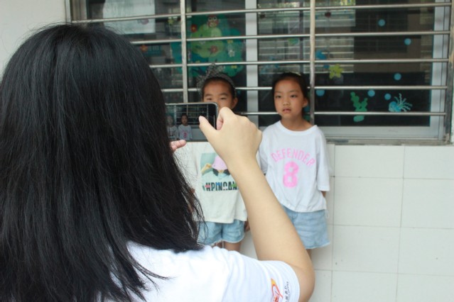 除此之外,志愿者们还在课余筹划了为河南加油的视频拍摄。在拍摄过程中,志愿者前往两个班征集学生意愿:“有哪些小朋友想和老师一起拍视频为河南加油呀?”孩子们纷纷举起手,积极踊跃地参与到其中。