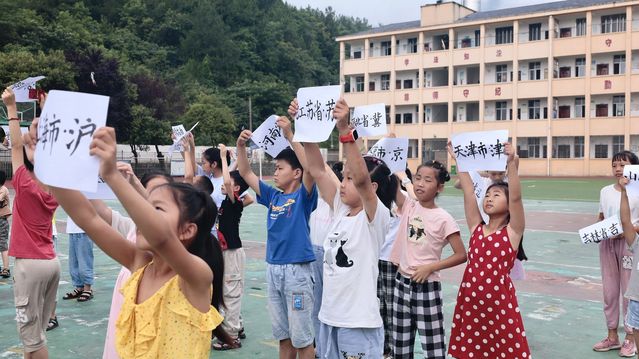 志愿者张恩泓在肖堰完全小学“希望家园”为孩子们开设了“多彩地理”系列课程,7月22日上午,是“多彩地理”系列课程的第一堂课。课上,张恩泓带领孩子们认识中国疆域版图,将各个省份以及自治区、直辖市和两个特别行政区的图片在课上一一进行展示,并通过形状联想和趣味口诀,来帮助孩子们把各个省级行政区的名字、简称、位置和形状对号入座。课堂的最后,志愿者将孩子们带到操场上,34名孩子手举写有34个省级行政区名字和简称的卡片,按照中国地图上34个省级行政区的方位站好,齐声高喊:“河南加油!”
