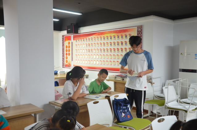 图为陈林涛为小朋友们分发纸张,鼓励小朋友们写下自己的特质,由此认识自己。通讯员刘雪阳