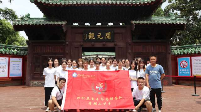 图为四叶草青年志愿服务队全体成员及指导老师在荆州博物馆开元观门前大合影。通讯员 李玉玲摄