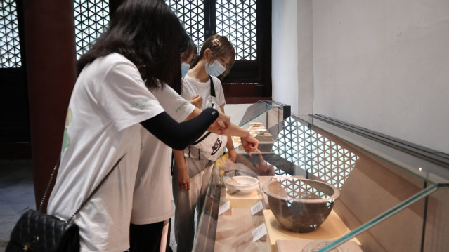 图为志愿者在荆州博物馆赏析历史文物,感受荆楚文化的灿烂辉煌。通讯员李玉玲摄