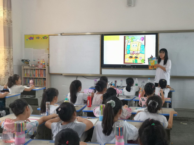 本网讯(通讯员 周惠琳)7月20日,我校“竟陵致远”支教团队为二三年级同学开展了第一堂绘画课。本次课堂意在让同学们感受绘画的乐趣,充分发挥自己的想象力,画出自己内心的“海绵宝宝”。