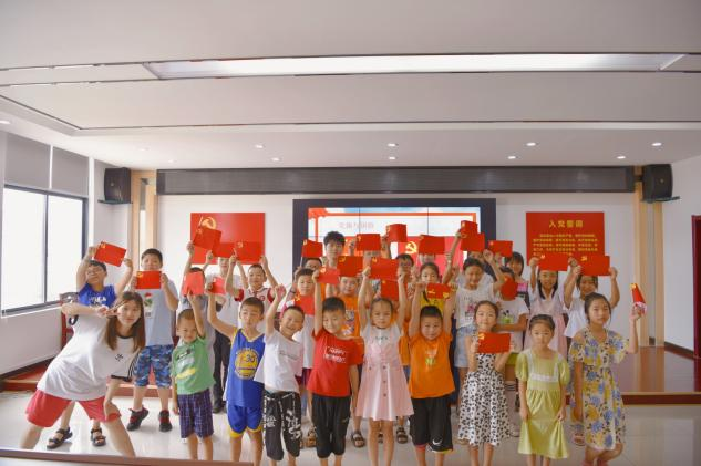 在第一节的党史教育课中,让我印象最深刻的是一名小男孩。每次老师提的问题他都会很积极地回答,答案也都正确,看得出来他的党史知识储备量很大,这是值得我们学习的地方。为了能让孩子们更好理解这一段历史,讲完理论知识后,我们拿出事先准备的红卡纸和黄卡纸,带领孩子们自己动手制作党旗。首先在黄色的卡片上画了党徽的大致轮廓,以防剪刀伤到孩子,我们几个老师分成四个小组亲自为孩子们剪裁粘贴,正所谓“自己亲自动手获得的才是最快乐的”党旗做完后,孩子们脸上都洋溢着成功的喜悦,他们将党旗挥舞着,放眼望去就像梁启超先生在《少年中国说》里的那句“红日初升,其道大光”。少年有着蓬勃向上的生命力,少年的前途一片光明。