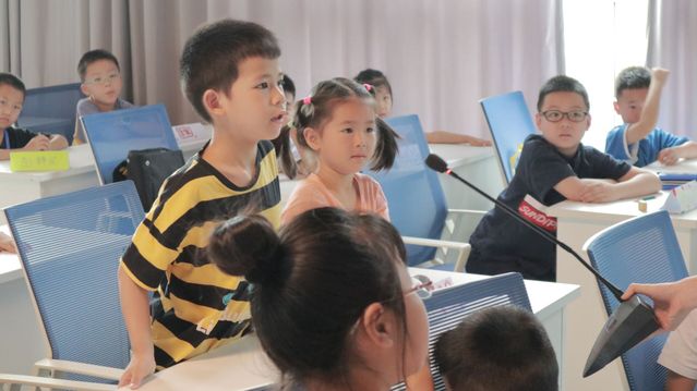 图为数学课上志愿者老师走进孩子们,鼓励他们思考并回答课堂上的提问。通讯员马恒芳摄