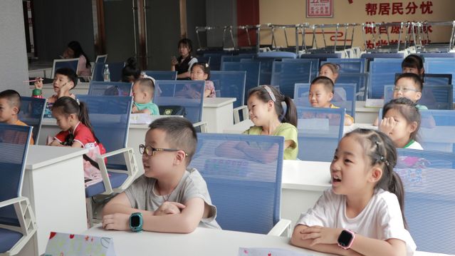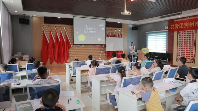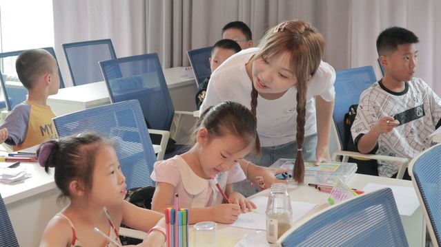 图为绘画课上志愿者老师引导孩子们画出自己想象的“太空植物”。通讯员 马恒芳摄