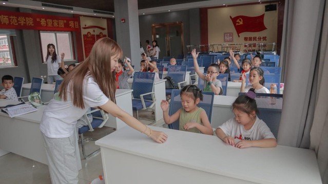 在第一次见到孩子们前,积极准备了很多的兴趣课程内容,包括主持课、乐理课、舞蹈课、兴趣数学等等,但当我第一次见到孩子们的时候,所有的课程安排却又被打乱了。迎接我的一幅幅陌生的新面孔,是6岁的稚嫩可爱的面庞,是12岁对知识充满好奇未知的眼睛,年龄的跨度和每个年龄孩子占比的不同,让原本信心十足备课的我又迎接了新的挑战。