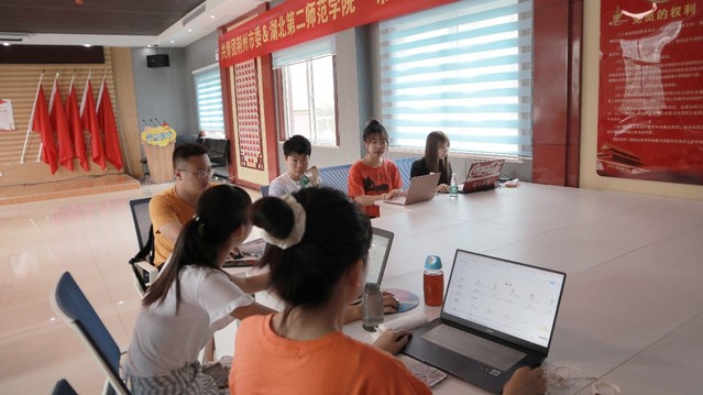 图为正式开课前,为带给孩子们更优质充实的课堂,志愿者们正在进行集体备课等准备工作。通讯员 马恒芳 提供