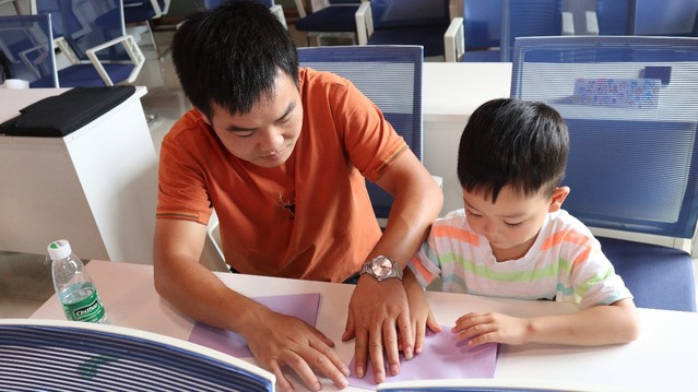 图为学生家长走进教室,亲身感受课堂。帮助自己的孩子一起完成当堂课程的内容。通讯员 马恒芳 提供