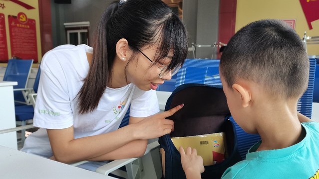 图为孩子们初到教室,志愿者帮助孩子一起收拾整理书包。通讯员 马恒芳 提供