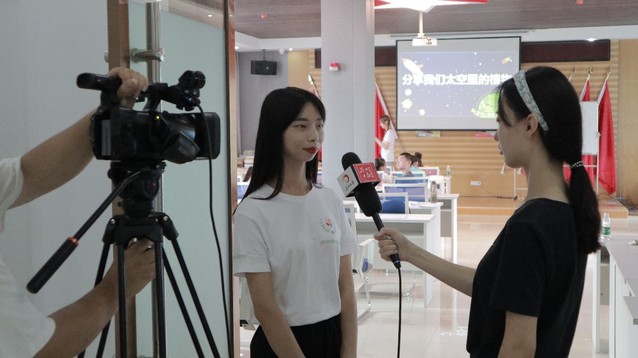 图为四叶草青年志愿服务队第二组组长贾云霞正在接受采访。通讯员 马恒芳 摄
