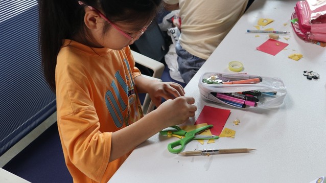 图为小朋友正在制作党旗。通讯员 马恒芳 摄