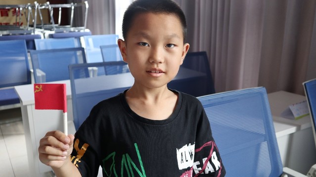 图为小朋友手举自己制作的党旗合影留念。通讯员 马恒芳 摄