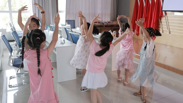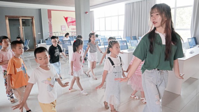 本网讯(通讯员 熊波莉)良好的艺术修养是孩子个人素质的重要体现,是孩子享用一生的财富。为了培养孩子的艺术性,让孩子走入集体,并在艺术的培育下善于思考、表达,增加勇气、自信,7月28日,我校四叶草志愿青年服务队第二小队的熊波莉在荆州市荆州市郢城镇五台村为孩子们开展了幼儿舞蹈《一年级》的教学。志愿者按照舞蹈示范、分段讲解、细节纠正的顺序进行教学,不论年龄、不论性别,孩子们纷纷融入课堂,沉浸在舞蹈的欢乐之中。