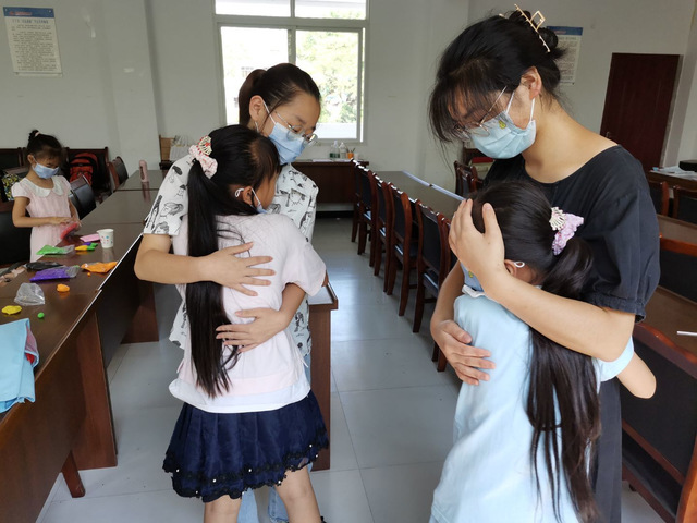 图为孩子们最后一堂课结束,和老师紧紧抱在一起。通讯员 吴予农 摄