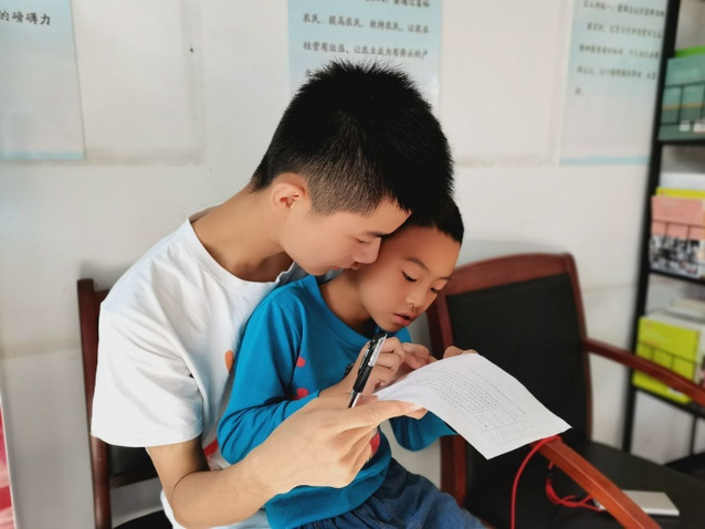 这个刚上一年级的孩子,早读的诗词中太多字都不认识,老师单独在后面教了一遍又一遍。通讯员郭梦摄