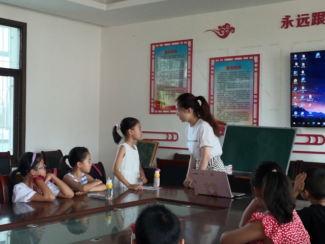 图为课堂刚开始时,袁艺格老师给小朋友们讲述党史课程的意义和重要性,并提了几个关于党史的小问题。通讯员 胡安琪 摄