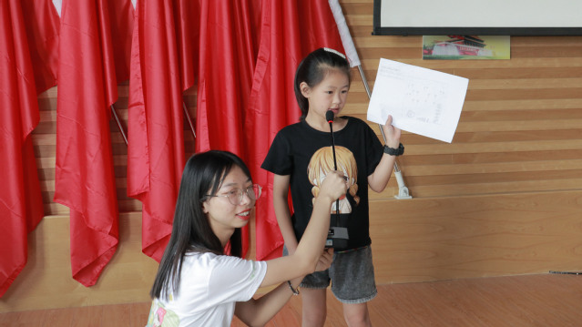 图为孩子上台分享自己完成的作品,抒发爱国情怀。通讯员 马恒芳 摄