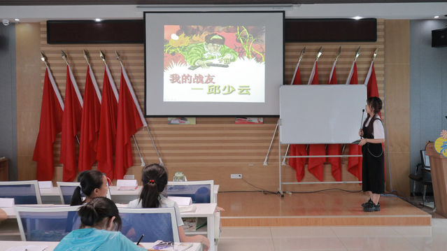 图为志愿者老师正在给孩子们讲述邱少云的英雄故事。通讯员 马恒芳 摄