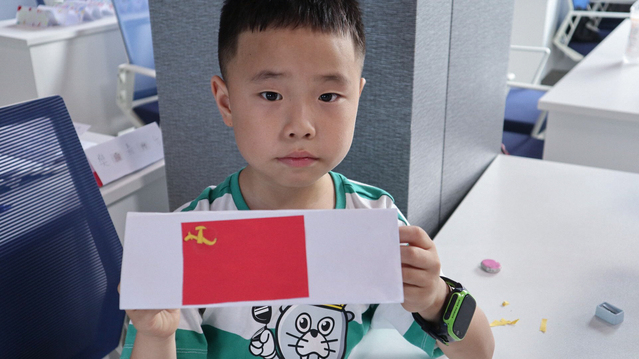 图为孩子们通过学习自己动手制作党旗。通讯员 马恒芳 摄