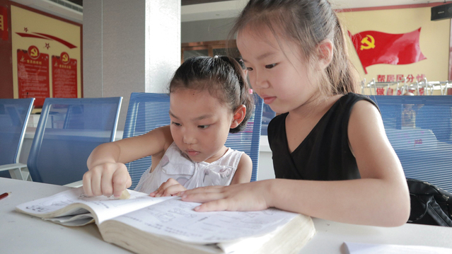 图为孩子们之间相互帮助解答疑惑。通讯员 马恒芳 摄