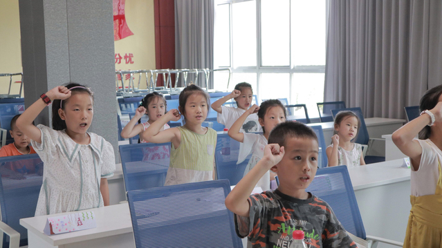 图为同学们上完《祖国,我想对您说》正在庄严宣誓。通讯员 马恒芳 摄
