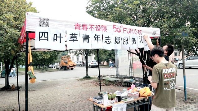 图为四叶草志愿者在筹备义卖活动。通讯员 马恒芳 摄