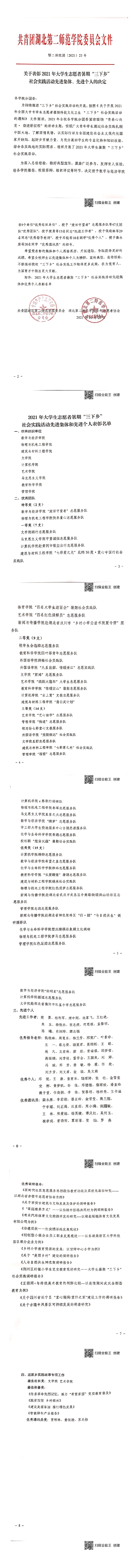 关于表彰2021年大学生志愿者暑期“三下乡”社会实践活动先进集体、先进个人的决定