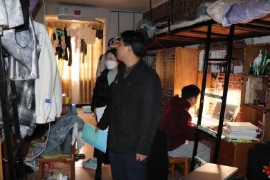 在检查过程中,熊坤鹏提醒同学们:“冬季是火灾隐患的高发季节,同学们要加强自我管理、提高防范意识,杜绝使用一切大功率电器,并且及时打扫、保持通风,养成文明健康、积极向上的生活习惯。”此外,他还主动询问同学们当前在学习和生活上存在的困难和疑惑,并就学业进展和未来规划两方面进行深入交流,勉励同学们要握大学时光,充分利用课余时间参加学术竞赛、文体汇演等活动,从而丰富自己的大学生活,提升自我。