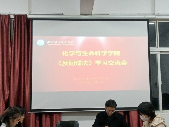 本网讯(通讯员 刘诗雨)为加强学生对《反间谍法》的认识与学习,明确学生会成员的工作任务,12月14日晚8时20分,化学与生命科学学院(以下简称“化生院”)于院学生会办公室309顺利召开学生会第五次例会。本次会议由主席团成员秦佳阳和分团委成员秦珊珊主持,参会领导为分团委副书记张灏,参会人员为各部门部长以及学生会全体成员。