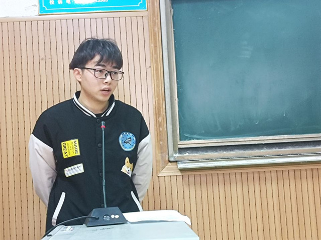 随后,学生代表徐鸿运发言,他号召全体入党积极分子认真学习,争取早日成为一名合格党员,并表示自己将会在以后生活和学习中,以党员的标准来要求自己,为每位同学做好模范带头作用。