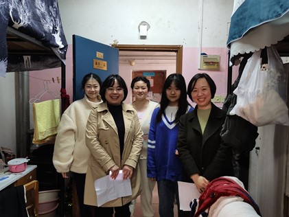老师们、学生党员们认真讲解、宣传,同学们仔细聆听,并与老师们交流想法。通过此次寝室走访活动,进一步强化了学生疫情防控安全意识,也让学生们感受到了学校和老师的关心和爱护。