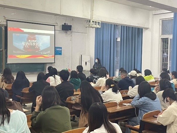 活动伊始,包金凤为大家播放了一段喜迎二十大的学习视频。并为大家介绍了本次活动的两个目的:宣传优秀主讲人及活力团支部推选。同时包金凤还详细地为同学们展示了上期百生讲坛活动的图片。