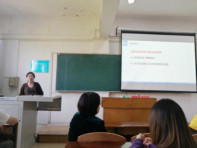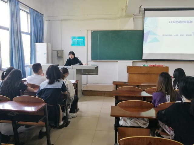 活动伊始,18级小学教育1班姬圆圆分享参赛经验,她不仅向在场学生讲述自己参加两次比赛过程中的一些难忘经历,还从学术潜力、团队协作及综合能力三个方面阐述了参加比赛的收获,以此激励在座学生积极参加比赛。紧接着,代黎明解读相关文件,并结合姬圆圆的经历讲述参赛对考研复试和后期发展的优势,另外将“互联网+”与“挑战杯”进行对比,让学生对“互联网+”有更多了解。同时,代黎明还从参赛有关事宜、如何实现零缺陷以及人才和团队培养等方面对学生们进行了详细讲解,并讲述比赛的含金量和重要性。