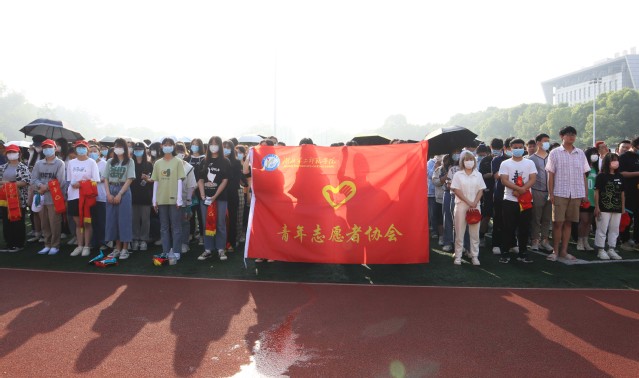 上午7时30分,志愿者们准时到达场地,按照所属学院进行分组并确定各组的活动场地。在前往活动场地前,志愿者按需分配物资,并佩戴绶带和小红帽。